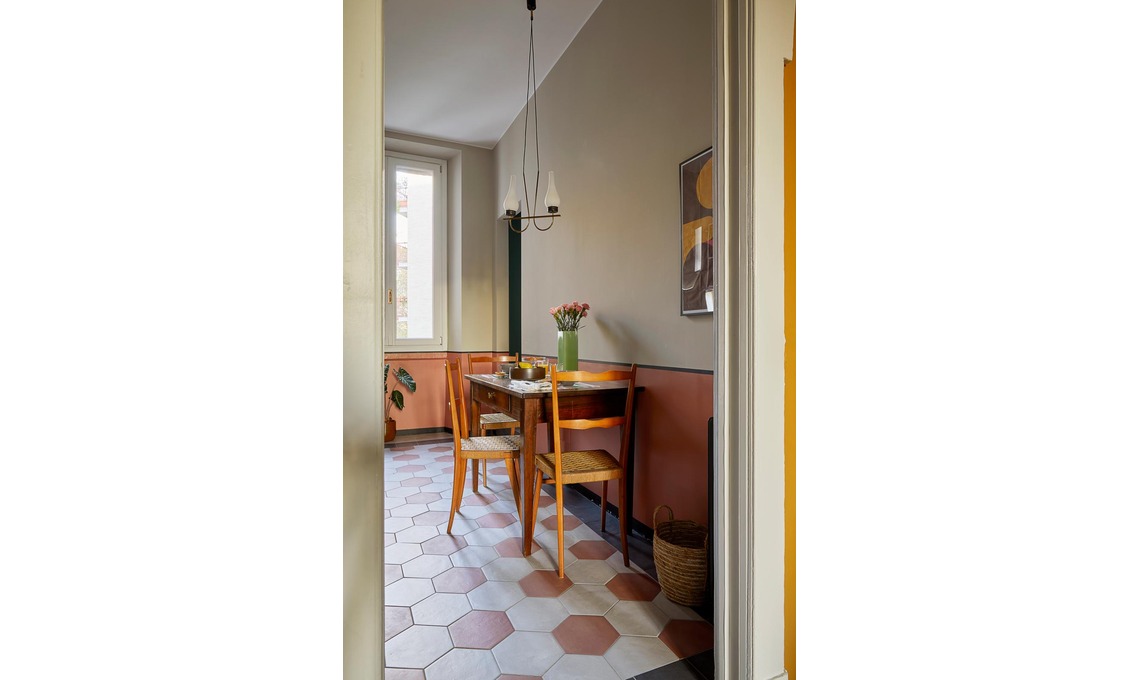 Nel palazzo d’epoca del 1913 in cui abita, Mariapaola ha ereditato un bilocale dalla nonna. «Ho deciso di ristrutturarlo per affittarlo, ma volevo recuperarne l’anima antica, farla rivivere oggi rispettando le qualità estetiche e i caratteri di inizio Novecento».