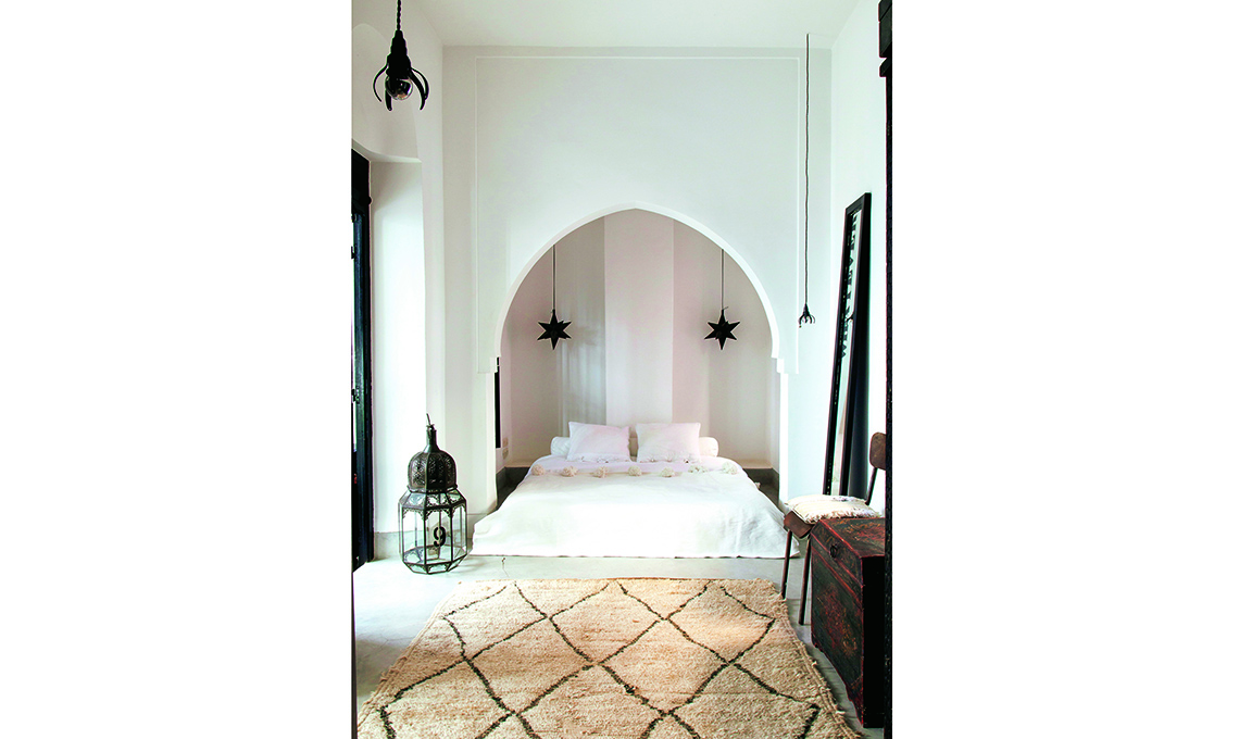 rappresentativo dello stile moresco: come luci, due lanterne a forma di stella [ne trovi simili da L’Argania]. Tappeto Beni Ourain [ne trovi simili di Lorena Canals]