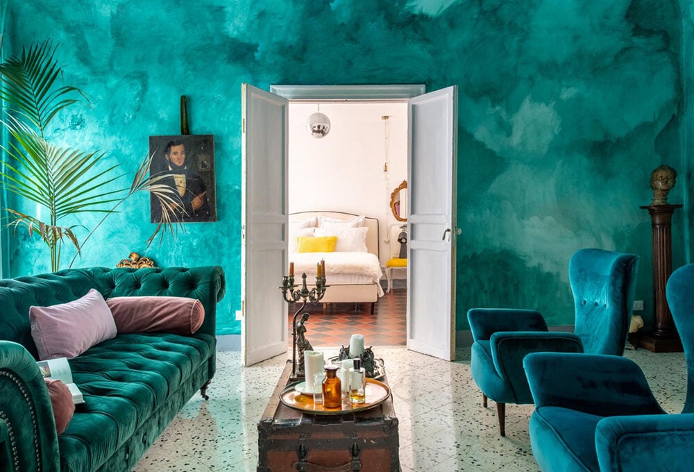 È stato decisivo l’intervento di Cristina che invece di ‘smorzare’ le boiserie in legno preesistenti le ha sottolineate aggiungendo carte da parati esotiche che danno un tocco eclettico e fanno risaltare le essenze scura del legno. Gli arredi sono un mix di pezzi presi nei brocante algerini e di vintage nostrano, come le poltrone gialle in stile Gio Ponti e quelle arancioni di Artifort che facevano parte dell’arredamento dell’hotel El Djazair ad Algeri.