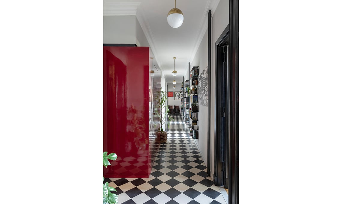 «L’appartamento rispondeva ai nostri gusti e all’amore per il design Anni ’50 e ’60. Erano ancora presenti pavimenti, boiserie e caloriferi d’epoca che, grazie al progetto di Cristina, sono nuovamente sbocciati» dice Alice. Alcune stanze sono state ampliate creando un divertente gioco di volumi che fuoriesce dalle pareti originarie, abbattute.