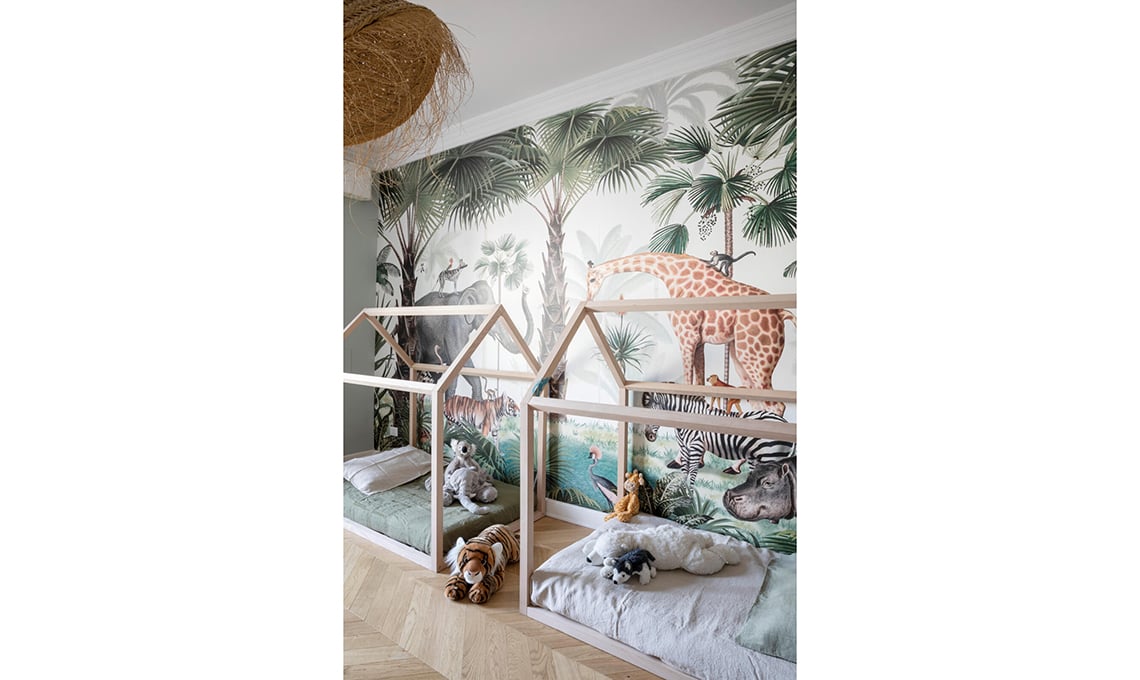 Carta da parati Animal Kingdom [Photowall], letti Dreamer Cabin Bed Natural [Blomkal].