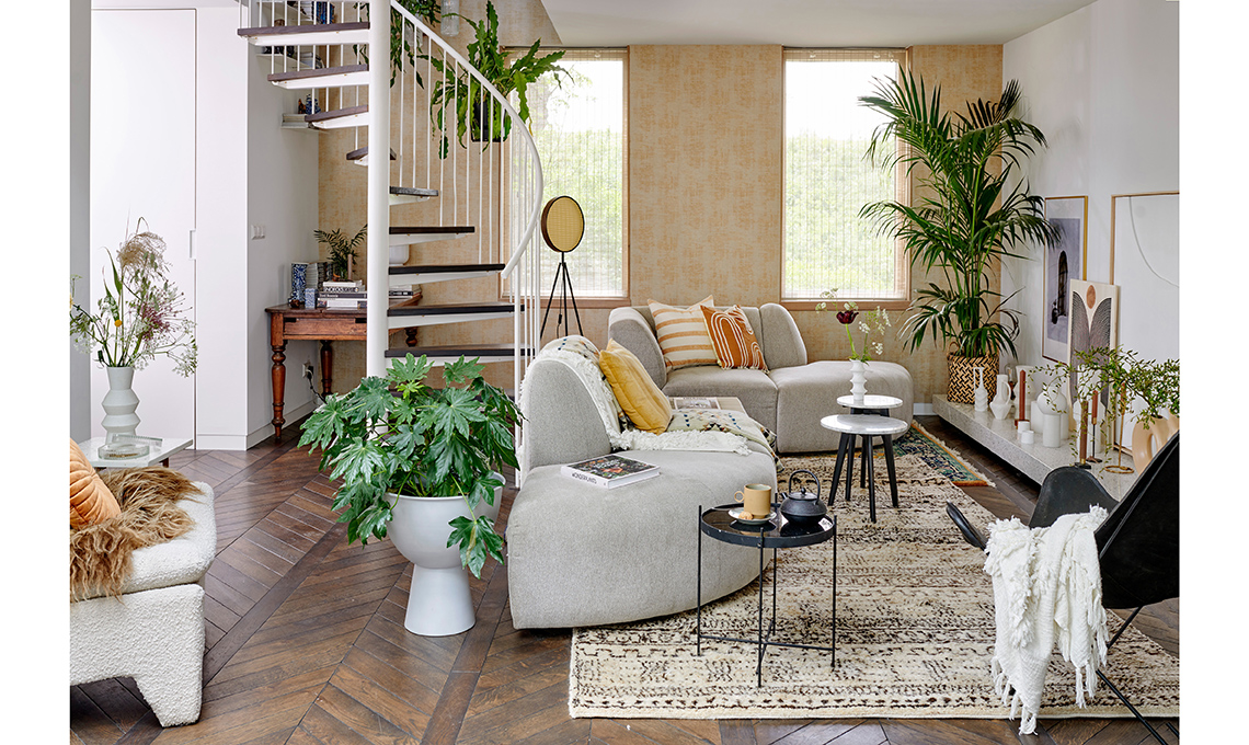 gli elementi delle linee Jax e Vint [HKliving]. Trovi cuscini a righe e tappeti neutri in questo stile nelle collezioni di [Lorena Canals].