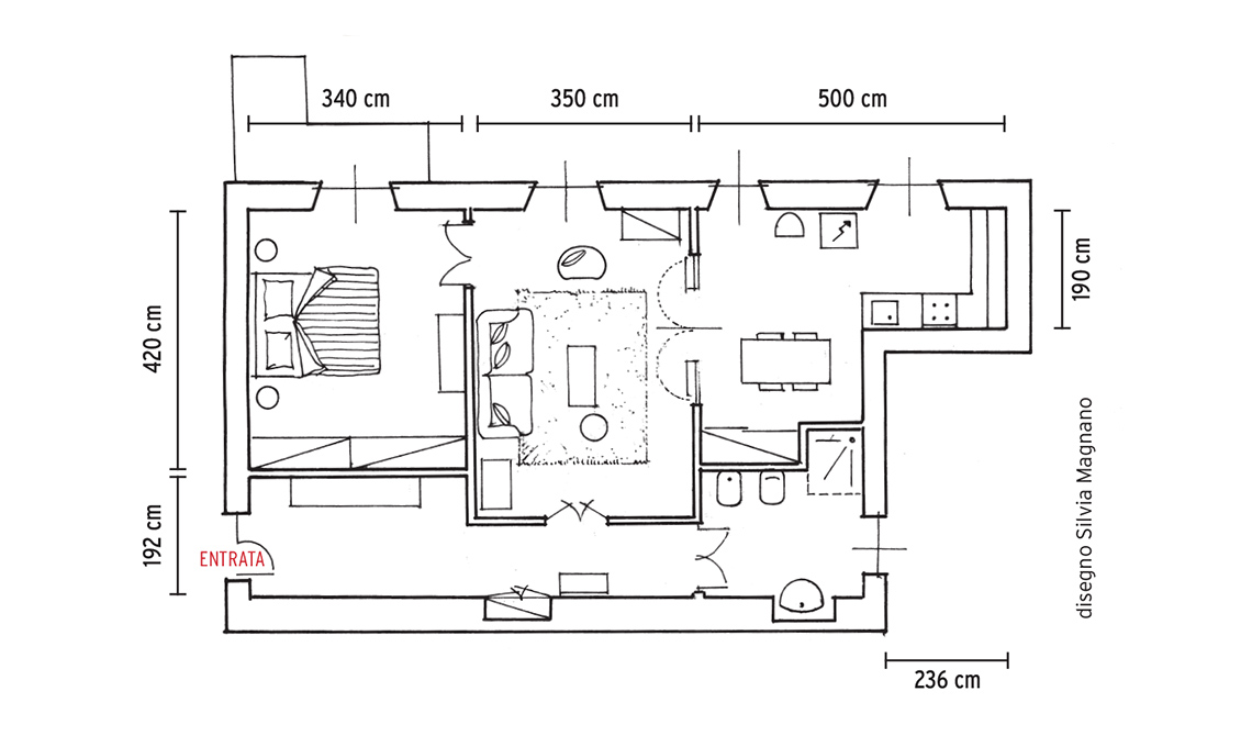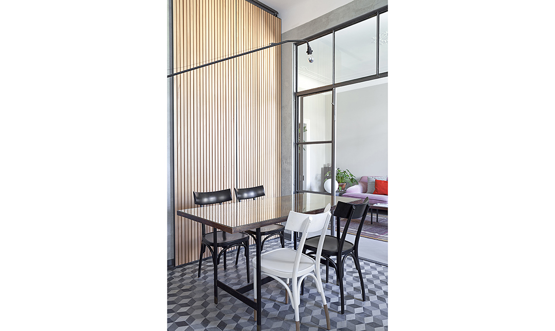 Nonostante sia stata ripensata nella distribuzione degli spazi, la casa non ha perso i soffitti alti, le porte a doppio battente, le finestre con gli scuri interni, le stanze che si aprono una sull’altra e tutti