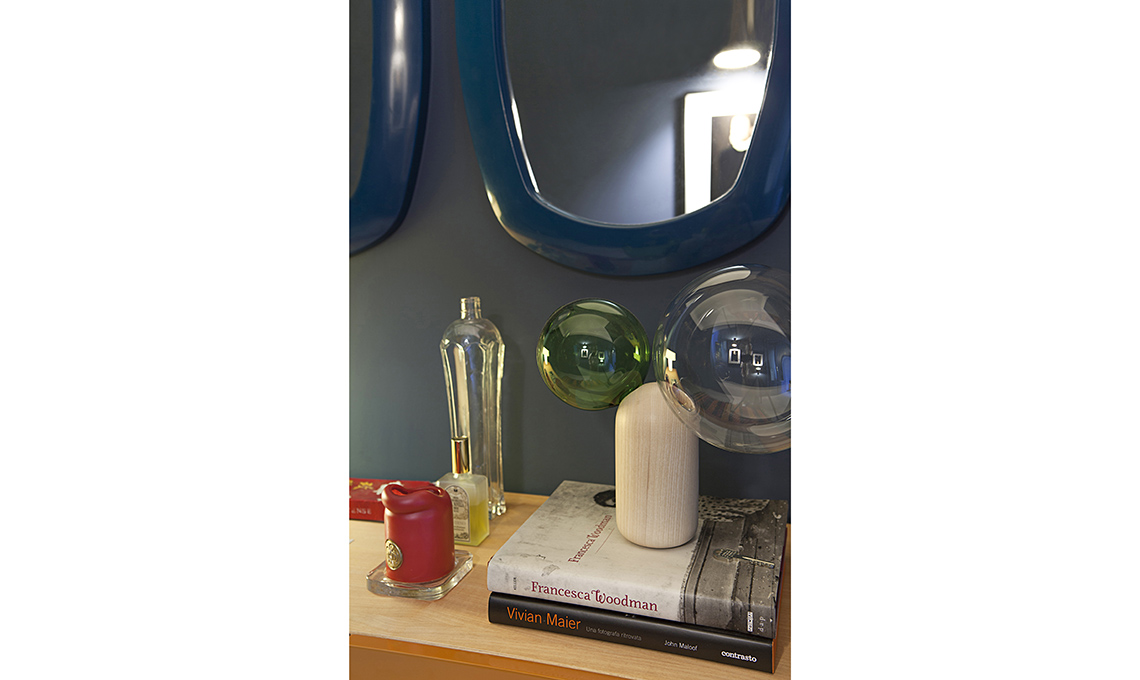 Vaso Crystal Ball [Cappellini € 500]. Colore a parete Stiffkey Blue di [Farrow & Ball].