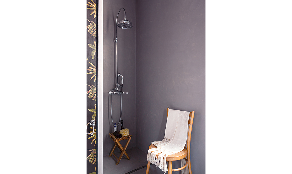 Hai due possibilità: puoi scegliere una carta ‘normale’ e proteggerla con un finish invisibile e opacissimo [vedi Extra matt finish W-340-P2 di The Paint Makers] che la rende impermeabile all’acqua se a contatto con i soli sanitari (come in questo caso); oppure puntare a una wallpaper waterproof [cerca la linea Glass di LondonArt], adatta persino all’interno della cabina doccia!
