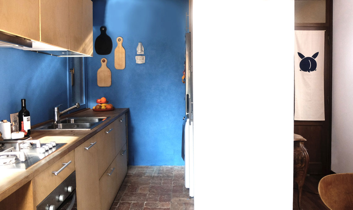 Tornando alla cucina, abbiamo utilizzato un espediente semplice e molto economico per ottenere esattamente quello che volevamo. Abbiamo progettato una cucina modulare adattata allo spazio che avevamo e alle nostre esigenze, abbiamo acquistato tutte le strutture interne dei mobili all’IKEA ed abbiamo incaricato un falegname di realizzare tutte le ante, i pannelli di rivestimento e il top nei materiali e finiture da noi scelti. In questo modo abbiamo ottenuto una cucina personalizzata, spendendo poco più di quello che avremmo speso con una cucina IKEA. Per chi volesse provarci e non ne avesse il tempo o la voglia, c’è un’azienda danese che fa esattamente questo per i suoi clienti: la Reform.