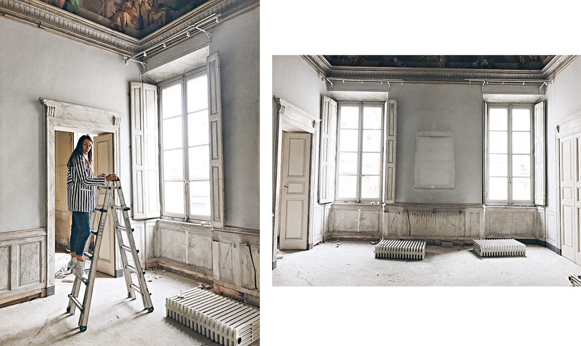 Pavimento coll. I classici [Rex], piastrelle Masia [Studio One €58 al mq], lavabo [Ceramica Cielo], rubinetteria Tab [Ritmonio], scatole e candele [Jo Malone], lampadario acquistato su [Etsy].