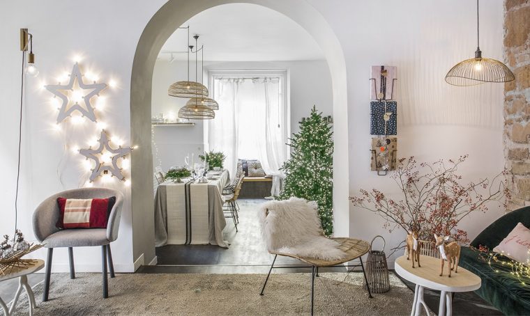 Nel living, la carta da parati ’affrescata’ fa da sfondo ai daybed salvaspazio rivestiti con tessuto panna come il pouf, con trapunte e cuscini nei toni delle spezie. L’insieme parla subito di morbidezza e calore.