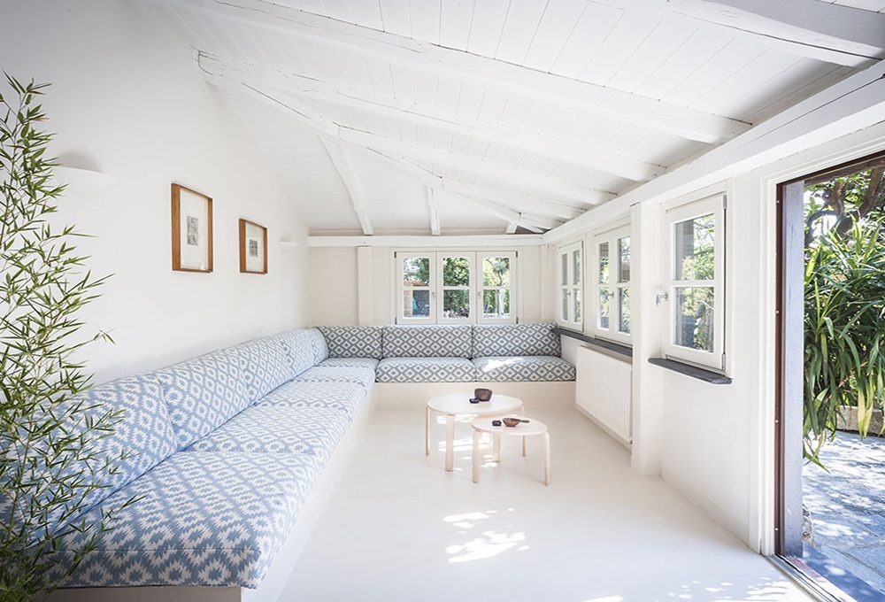 Nella libreria, quadro di Stefania Artusi. Vuoi una chaise longue con materasso aggiunto? C’è Costa [Bloomingville, su Made in Design €469]. Sedia con poggiapiedi Chill Exterior [Sika-Design su » finnishdesignshop.it €1.435].