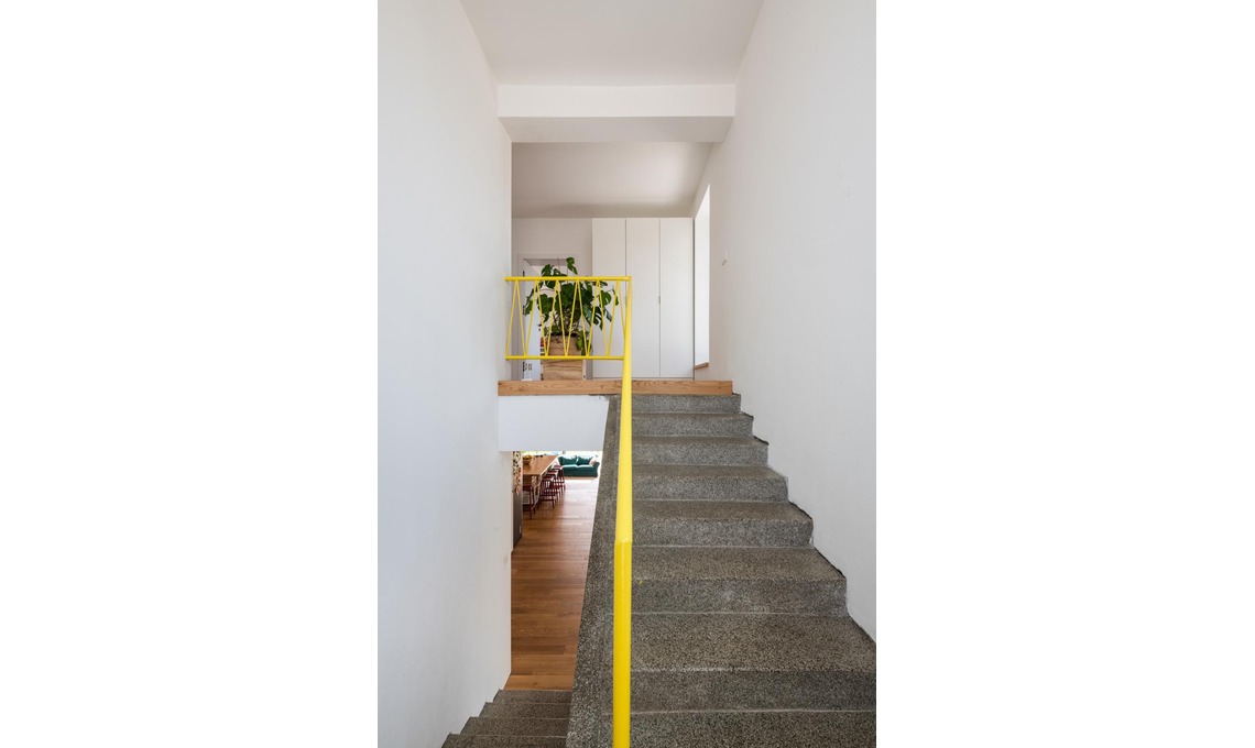 vivere'! Questo è ciò che accade ogni giorno in questa casa: i gradini sono la base perfetta per ogni attività, dal suonare al giocare al puro rilassarsi... La struttura in compensato di pino, realizzata su disegno degli architetti, assolve a più funzioni e soddisfa le esigenze dei componenti della famiglia.