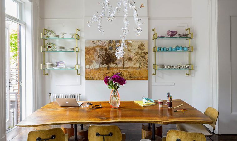 Le sedie del tavolo da pranzo sono un’icona del design del 1950 firmata da Hans J. Wegner, la Wishbone Chair o CH24 [Carl Hansen & Son, da €567]. Copia lo stile del salotto con il divano Delphes [Maisons du Monde, cm 215x80x70h €1.190] e la poltroncina Ticao in teak riciclato e rattan [Maisons du Monde, cm 65x82x71h €290].
