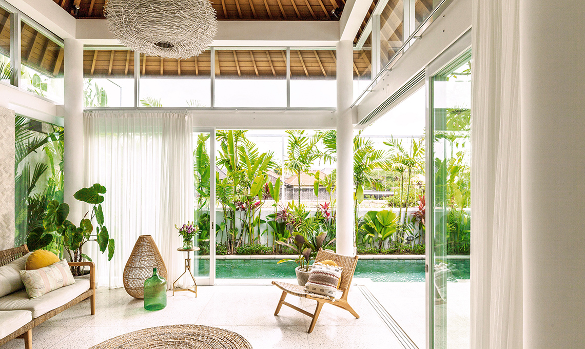 A Bali, a due passi dall'equatore una piccola villa offre un cocktail inedito: minimalismo, design e artigianato orientale.