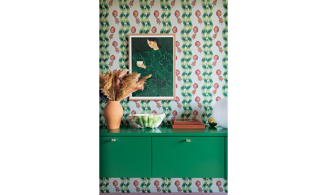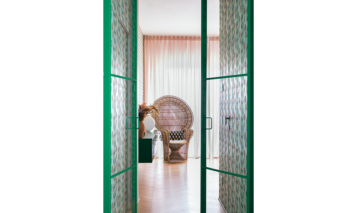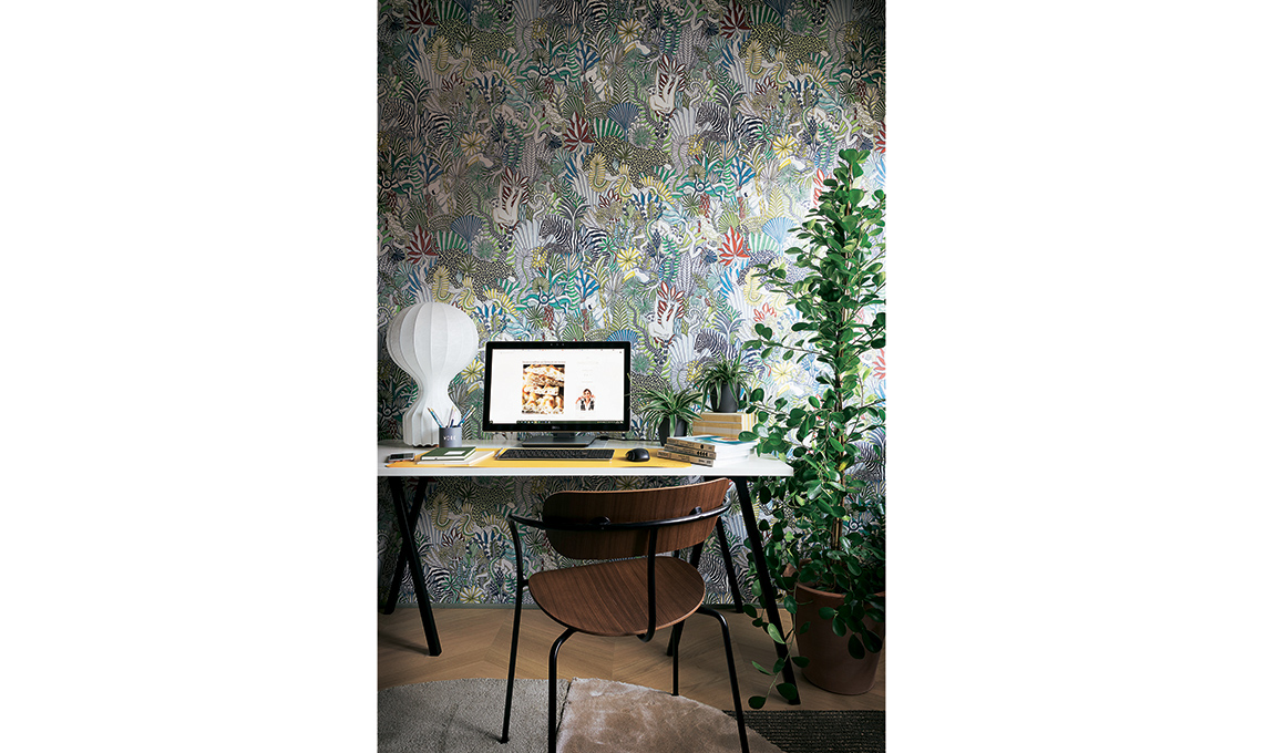 «Lo studio del mood è partito dai mobili di famiglia che volevo recuperare, come il tavolo in cristallo e ottone di Romeo Rega o la credenza scura, pezzi di pregio ma difficili da inserire» dice Paola. «Grazia ha selezionato alcuni pezzi, ne ha scartati altri, li ha spaiati o li ha ritappezzati. E ha fatto la magia: io sono una che osa, amo lo stile boho-gipsy e lei l’ha realizzato con un tripudio di carte da parati fiorite e una palette complessa che lega anche il Seventies!».