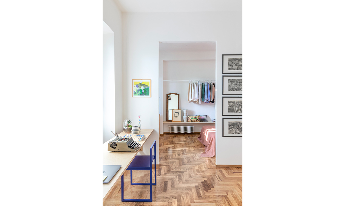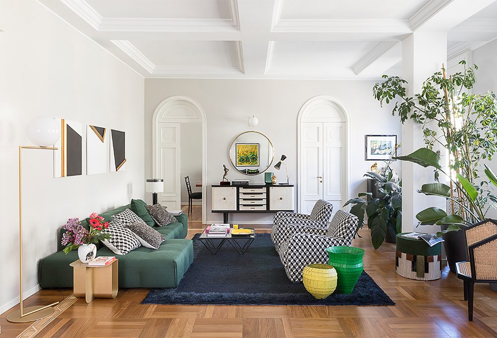 Tutto parla di Aurora: il rosone luminoso che racconta le sue origini pugliesi, il tavolo omaggio alla sua passione per l’architettura, il parquet su cui camminare a piedi nudi... Cristina Gigli ha aggiunto accessori, tessili, piante e complementi di design che sono anche pezzi unici: in linea con il progetto ha dato ‘colore’ con una palette vintage, tessuti dai pattern rétro rieditati in chiave moderna e oggetti artigianali.