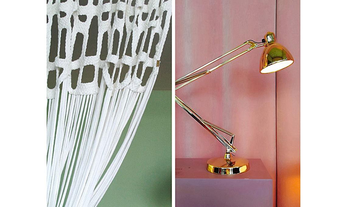 Cascade [cm 300x300h €500] e tappeto Merletto [cm 300x200 €1.800] di [unPIZZO]. Accappatoio Anna Lotus [Vossen], stampe [Desenio].