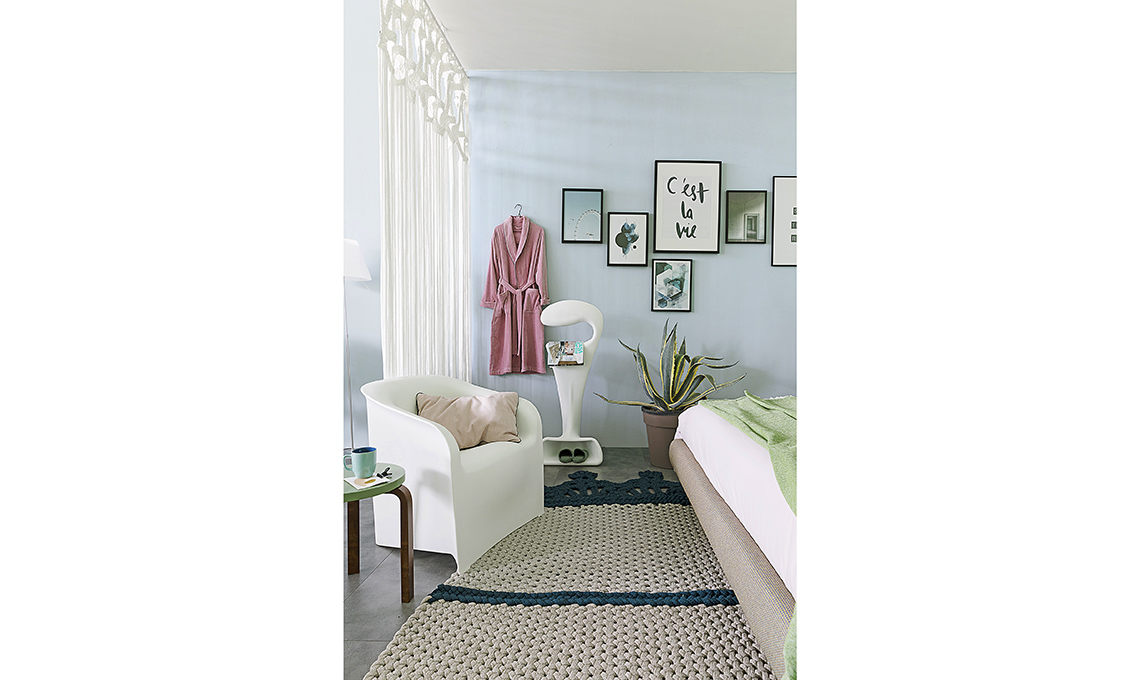 In un open space così, la creatività può correre libera: una parete troppo alta diventa lieve se ricoperta di un drappo di velluto, la camera da letto si scherma con una tenda crochet. E i piumini diventano nuvole.. (dice Elisabetta Viganò, che ha collaborato al progetto). Per ricordare che ogni casa, anche la più normale, vuole un pizzico di follia decorativa!
