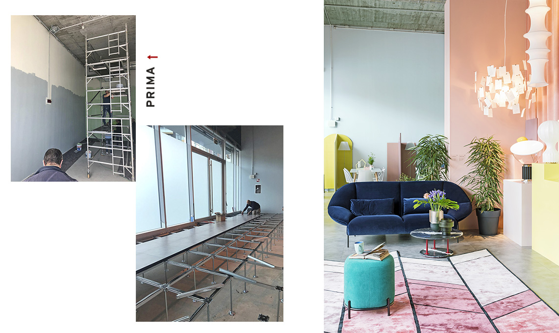 Un open space ‘al grezzo’, con vetro e cemento a vista, pilastri, soffitti alti: quando la stylist Vanessa Pisk, con il suo team composto da Maddalena Rosso e Omar Radi, è entrata qui, lo spazio era tutto da inventare.
