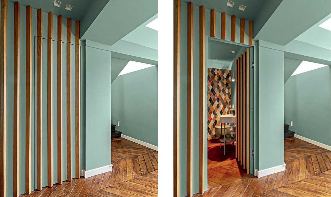 è a scomparsa. «Il match del verde salvia + bianco ottico crea giochi
