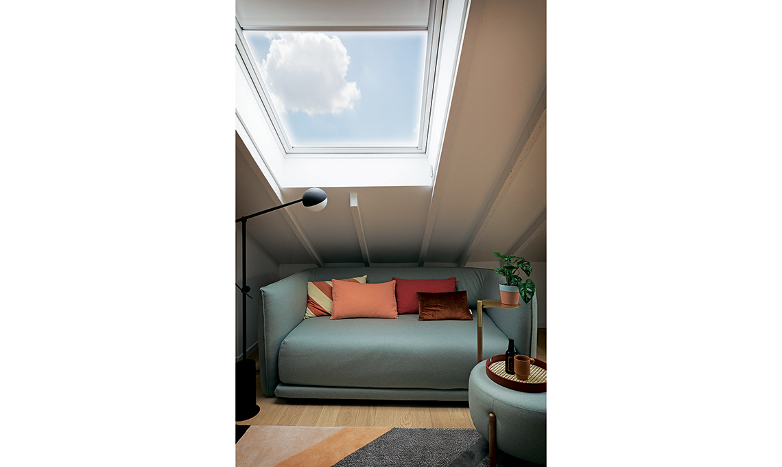 comando a distanza, hanno sensori di pioggia [Velux, prezzo su progetto]. Sul divano letto Jill