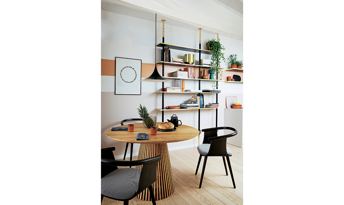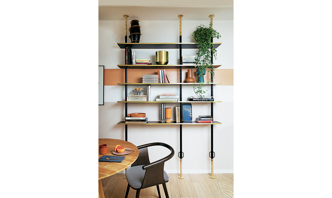 La libreria Puntello è una rielaborazione dell’iconico modello con montanti a soffitto, rivisitato con strutture per ponteggi edili. Vanessa l’ha proposta per introdurre un elemento che fosse al tempo stesso classico e ‘di rottura’.