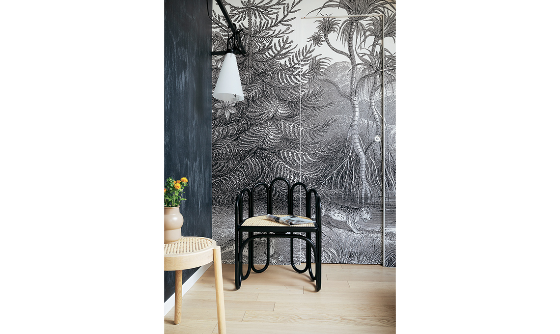 Vanessa ha selezionato una libreria ispirata alle impalcature edili, ha aggiunto dettagli in ottone e un tappeto che ho amato subito; per le camere ha scelto un’interessante finitura antracite e due carte da parati diverse ma che sembrano raccontare la stessa storia: la nostra!