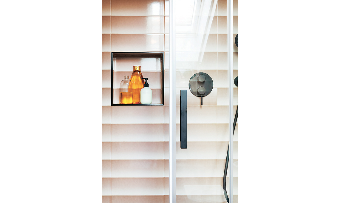 Se la parete è di mattoni pieni, invece di forare le piastrelle per appendere i portasaponi, fai scavare una nicchia nella muratura: bastano 8/10 cm di profondità. Piastrelle Shades of Blinds rosa [Diesel per Iris Ceramica cm 30x10]: sono disegnate in modo da riprodurre l'effetto della luce che filtra dalle veneziane.