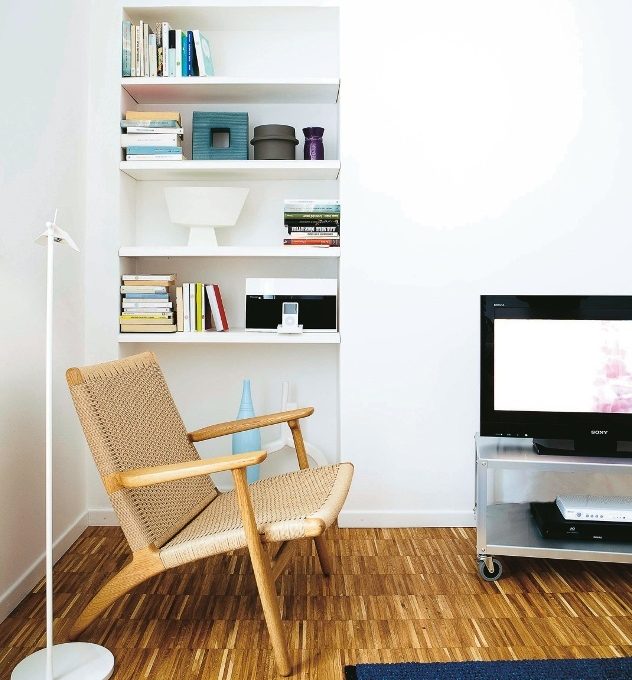 Un angolo total relax è stato organizzato accanto alla finestra del soggiorno: nella nicchia sono state inserite nuove mensole per libri, docking station per la musica, più oggetti décor e, in primo piano, una poltrona di design danese del 1950: un chiaro invito a rilassarsi.