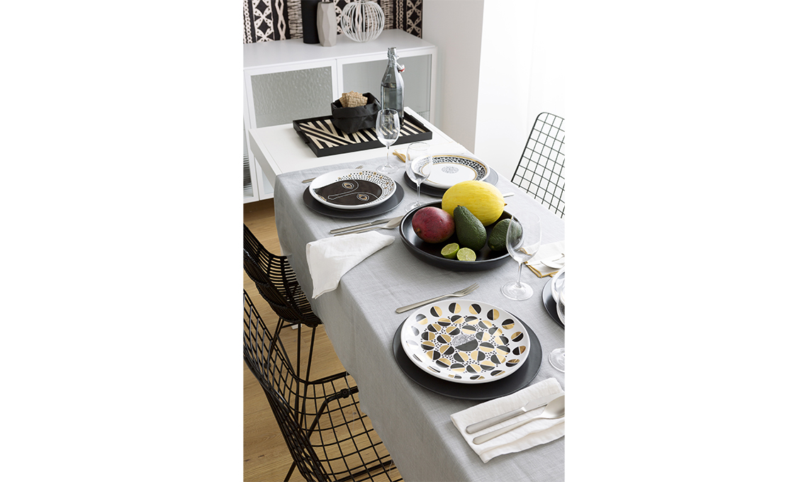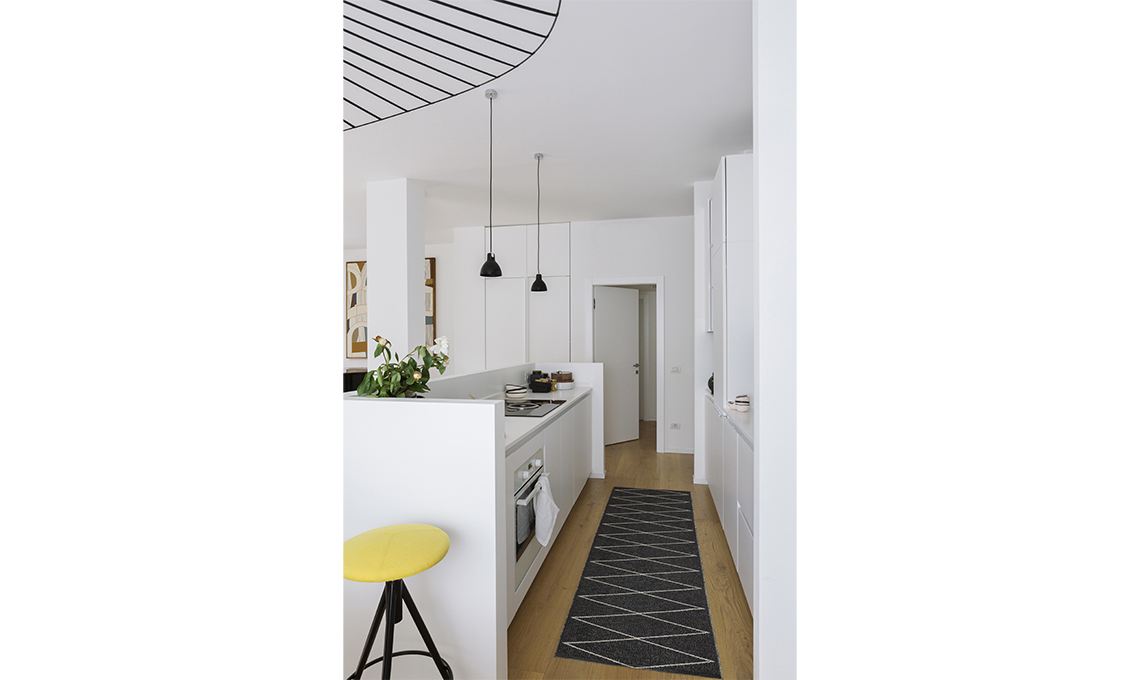 Sia in soggiorno sia in ingresso, Vanessa ha saputo combinare l’amore per l’etnico all’anima un po’ punk di Annalisa (è lei a definirsi così), abbinando grafismi afro in bianco e nero ad accessori metal ed essenziali come le lampade, le sedie scelte per il tavolo e l’appendiabiti all’ingresso. «Quando gli amici entrano in questa casa ci dicono sempre che ci rispecchia appieno» racconta Annalisa. «E Vanessa è riuscita in un miracolo: tutti gli oggetti che portiamo dai nostri viaggi intorno al mondo, che prima si perdevano in ambienti a loro estranei, qui trovano la loro giusta collocazione».