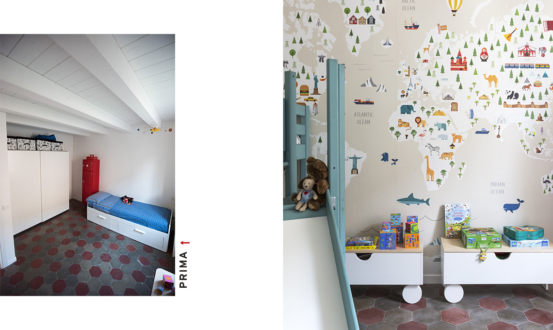 Roberta, tramite CasaFacile, ha contattato Cristina Gigli e... è stata un’esplosione di colori che ha dato carattere alla casa. Un percorso divertentissimo. Cristina ha spronato i padroni di casa ad appendere quadri e illustrazioni che tenevanomo via da anni per paura di rovinare le pareti con i chiodi. Li ha aiutati a riappropriarsi fino in fondo del loro spazio aprendoli all’estetica senza però rinunciare alla praticità.
