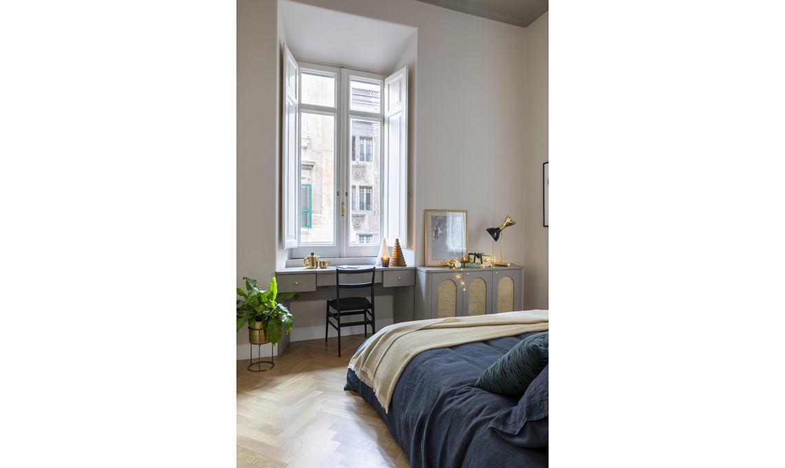 L’utilizzo a piene mani dei neutri e dei bianchi aveva dato una personalità indefinita, mentre le strombature delle grandi finestre che occupavano pareti intere mantenevano le stesse totalmente inutilizzate: c’è voluto un intenso lavoro di progettazione su misura che ha fatto guadagnare metri quadri soprattutto nelle camere da letto, che oggi prevedono delle scrivanie a incasso.