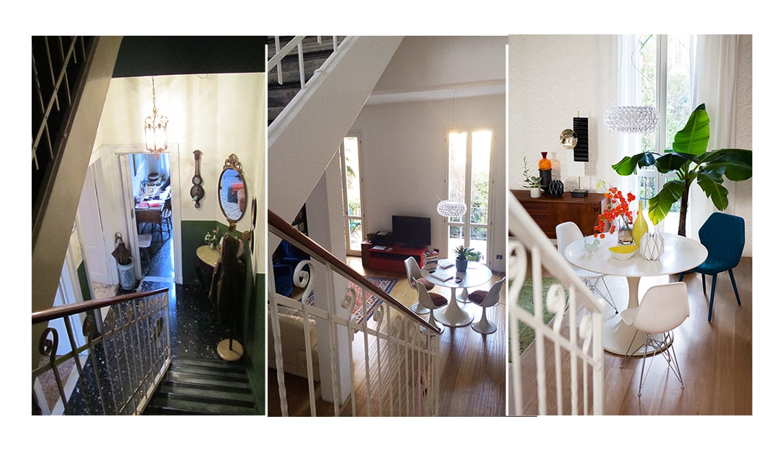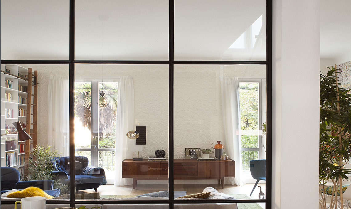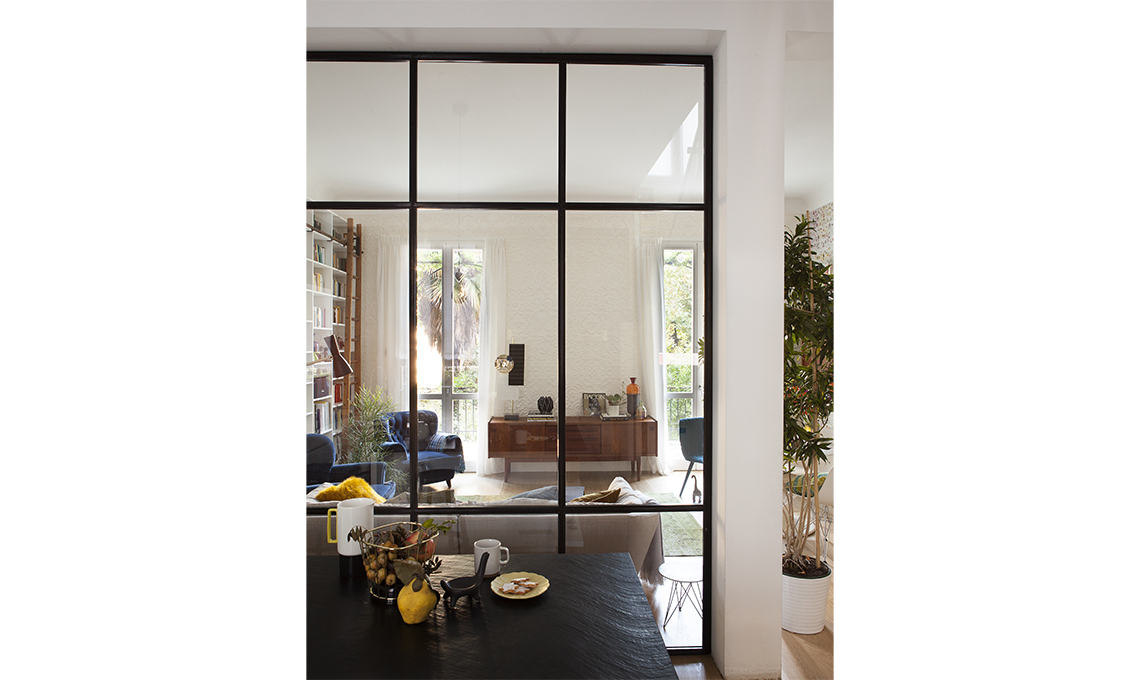 È un classico, quando si compra una casa d'epoca: le stanze sono chiuse e piccole, inadatte allo stile dell'abitare contemporaneo. È successo anche a noi: nel piano living della nostra villetta Anni '20, in soli 50 mq c'erano tre stanze. Per prima cosa abbiamo deciso di abbattere le pareti, che non erano portanti a eccezione di un pilastro. Così abbiamo ricavato un open space. Bello, sì, ma...Quel pilastro in mezzo rovinava tutto e dava un'aria un po' squallida al soggiorno che, oltretutto, era arredato con i mobili traslocati dalla vecchia casa. Come nascondere il pilastro portante? Ci è voluto qualche anno per trovare la soluzione: abbiamo pensato di decorarlo, di trasformarlo in una mini libreria, di usarlo per appendere collezioni di foto... Ma nessuna idea era abbastanza convincente. Finché abbiamo provato a ragionare da una prospettiva diversa: perché non provare a renderlo utile, cioè a fargli reggere qualcosa? Per esempio una parete vetrata che avrebbe separato la zona cucina dalla zona soggiorno, senza tuttavia isolarle visivamente. In questo modo il pilastro non solo ha ritrovato uno scopo, ma è letteralmente "sparito"! Perché ora non lo si percepisce come un intruso in mezzo alla stanza, ma come una parte della parete vetrata.