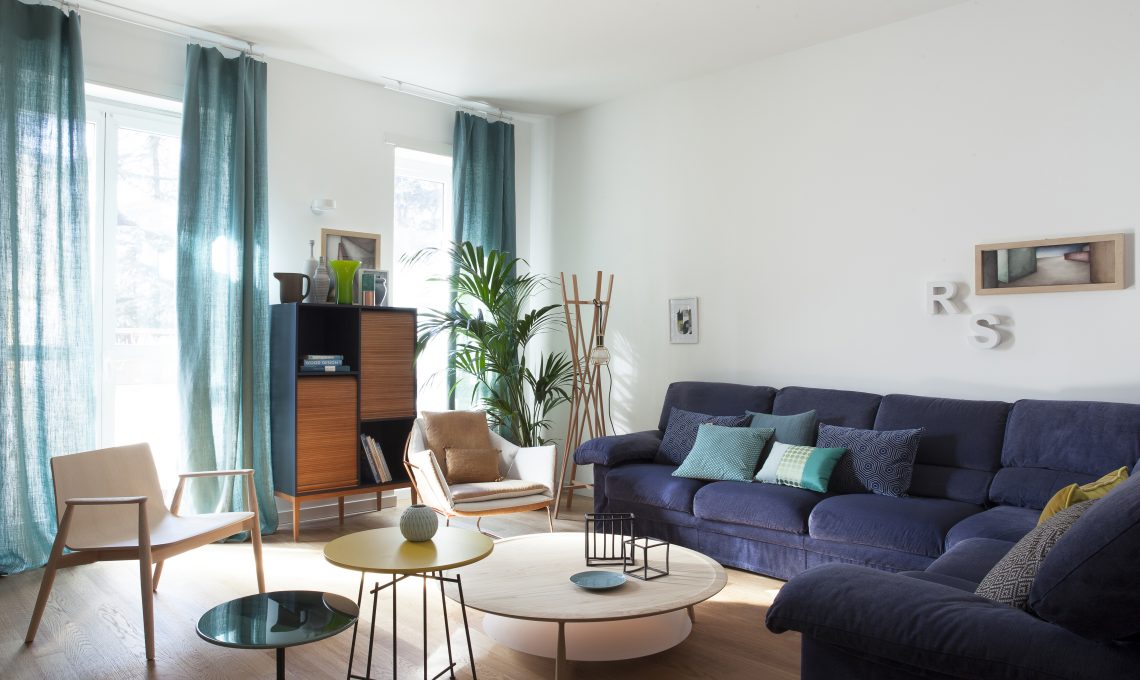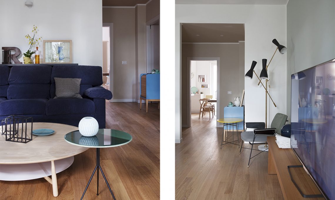 Milano, appartamento Anni '70, una giovane coppia lo compra e inserisce solo i pezzi base, cioè la cucina e il letto. Imbiancato di fresco, è luminoso ma non ha carattere. Stefano e Rossella, i proprietari, si trovatano davanti al classico dilemma: da dove si comincia ad arredare una casa vuota? Regola n. 1: partire da ciò che si ha, in questo caso il divano blu Anni ’70 di recupero (era del precedente proprietario), che ha dettato legge nella scelta dei colori. È stata la nostra stylist Giovanna Fra a guidare le scelte e soprattutto a insegnare un metodo. Ogni ambiente deve avere un suo ‘tema cromatico’ e per deciderlo serve una moodboard.