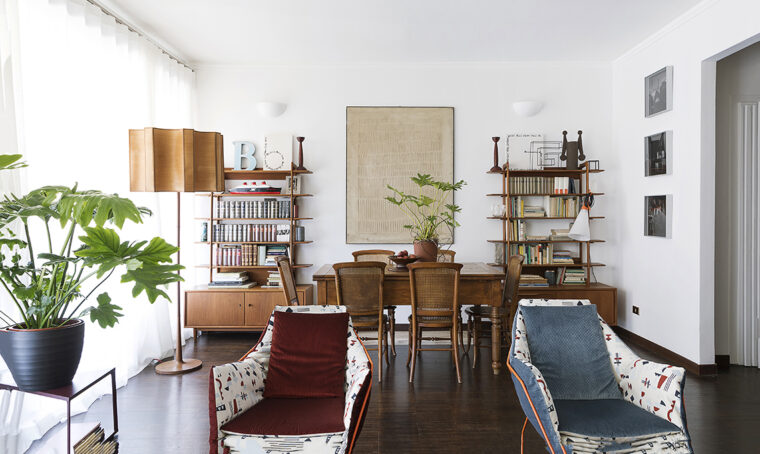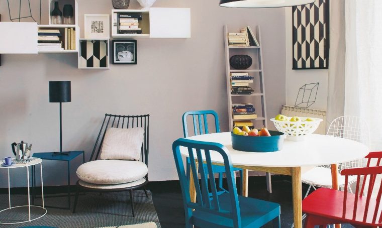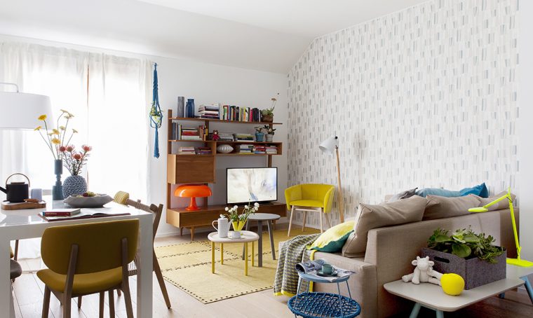 4 Giocare con le geometrie. Osa e abbina a elementi vintage e un po' classici (come tavoli, sedie, armadi) tappeti e tessuti di grande impatto grafico. Il risultato sarà fresco e moderno