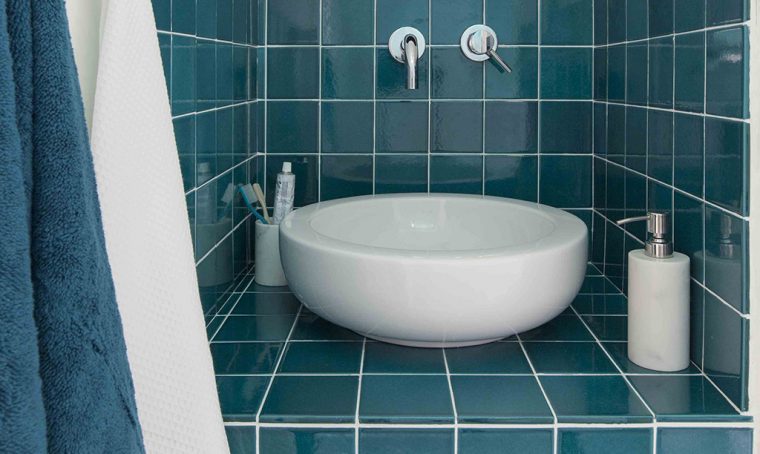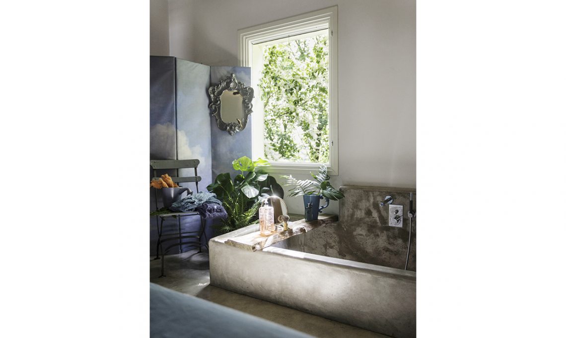 Accanto alla vasca in cemento, il paravento è stato realizzato stampando i dettagli di un quadro. Sul sito del museo Rijksmuseum di Amsterdam puoi salvare le immagini dei tuoi quadri preferiti, scaricarle e stamparle. Asciugamani Dafne [Fazzini €19,90]. Brocche e specchio [Rebirth Ceramics].