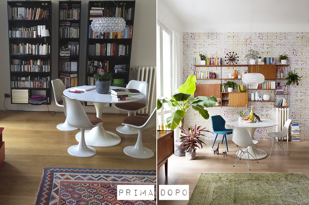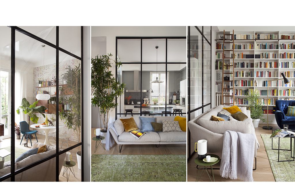 Un relooking a base di mobili vintage e carta da parati. E una parete vetrata ideata per risolvere l'open space mal riuscita