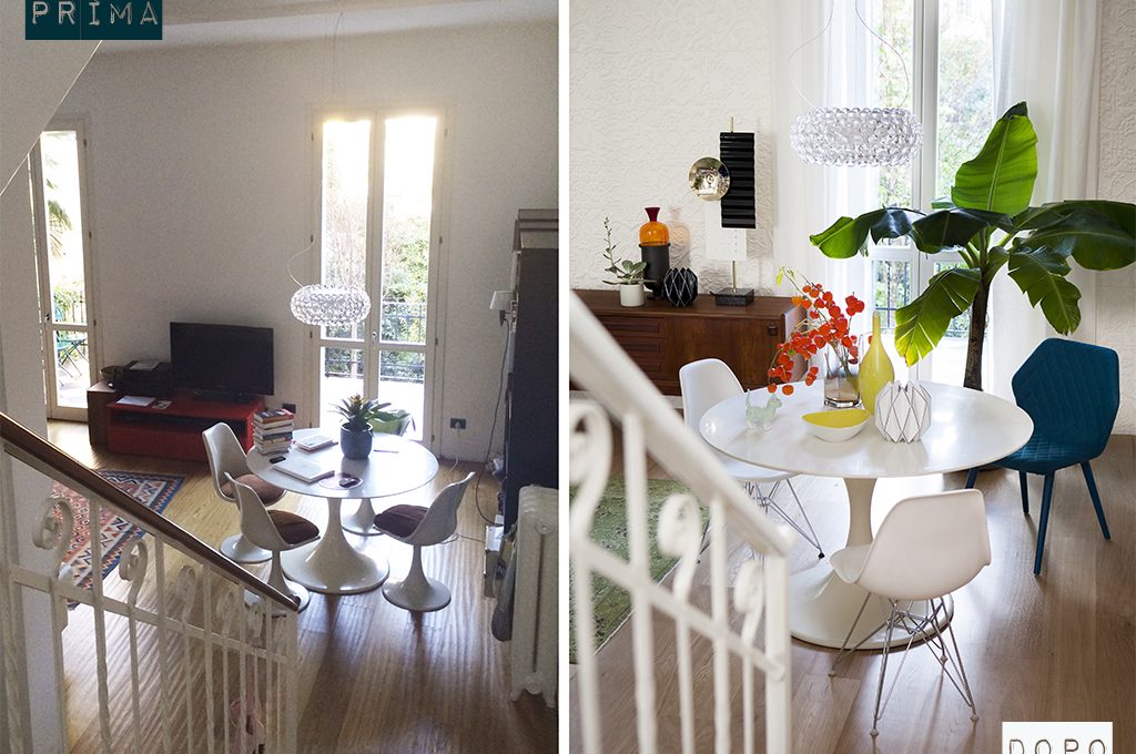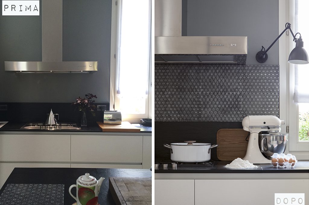 ...ed ecco la parete della cucina vista dal living dopo il relooking! La parete vetrata unisce visivamente gli ambienti soggiorno e cucina, dando la giusta funzione a ognuno.