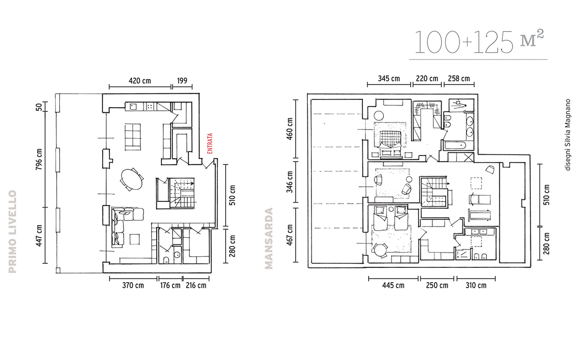 Dopo dieci anni passati per lavoro a Londra e vissuti in una tipica casa con giardino interno, Silvia e il marito sono tornati a Milano con gli occhi e il cuore ancora pieni dei colori dei prati inglesi e dei cieli azzurro-grigi che considerano tanto romantici... L’idea di trasferirsi in un classico condominio senza verde non l’hanno neanche presa in considerazione.Lungo il Naviglio Pavese era in fase di completamento un magnifico recupero di una storica cartiera con 3 corti interne... detto, fatto: acquistano un appartamento di 3 locali a piano terra con affaccio sul verde. All’arrivo delle gemelle, però, gli spazi si fanno stretti e, con i nonni lontani ma desiderosi di far visita spesso, Silvia trova, sempre qui, una casa su due piani molto grande, con una terrazza a loggia da vivere per più di metà dell’anno e un piano superiore a mansarda con travi a vista.