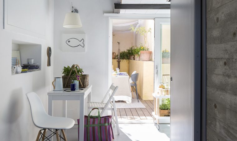 Lo stesso tavolo, con piano in marmo, serve a Paola per lavorare come 'naso' tra i profumi e pranzare in stile mediterraneo! Trovi sotto dettagli e prezzi di quel che vedi nelle due foto