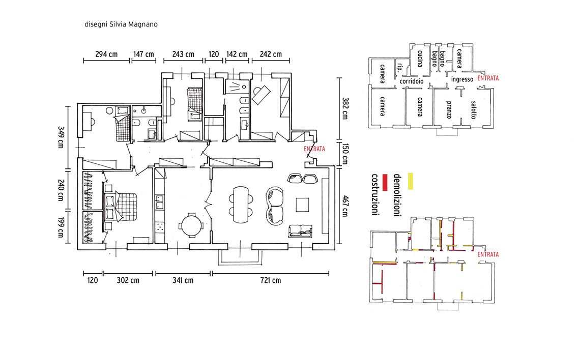 Sul tavolino, vassoi Eye [Les-Ottomans, cm 27,5x13,5 € 35 cad]; sul sofà, cuscini [L’Opificio].
