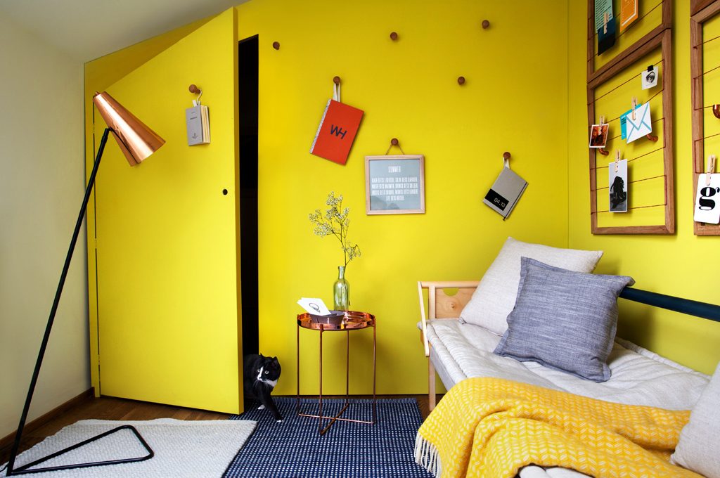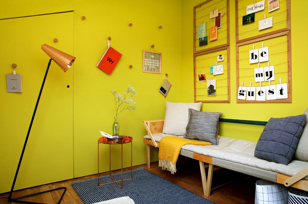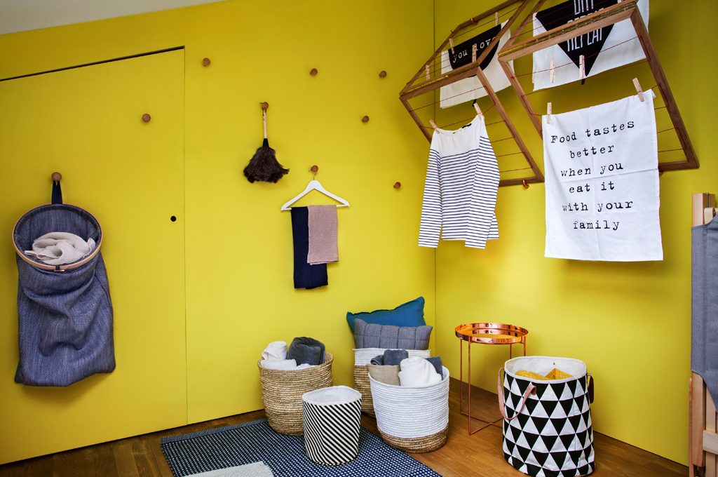 Le pareti sono state dipinte con un vitaminico giallo lime e il locale è stato attrezzato con accessori doppio uso e fai-da-te, in perfetto stile CasaFacile!