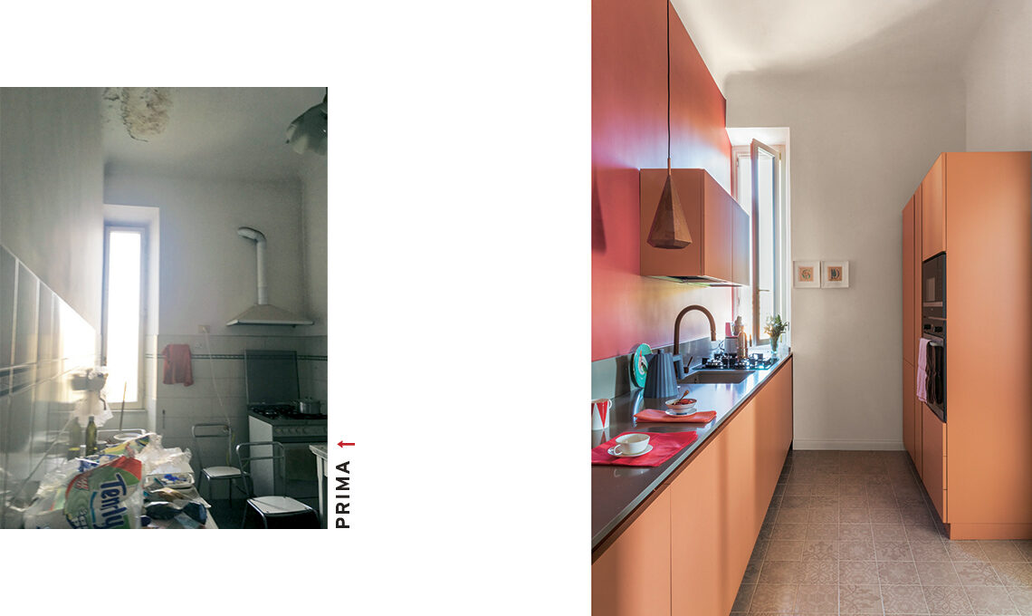 «I colori della cucina, ora ‘a vista’, riprendono e accentuano la palette di salotto e pranzo. E perfino lampade e placche degli interruttori sono in nuance con i mobili!».