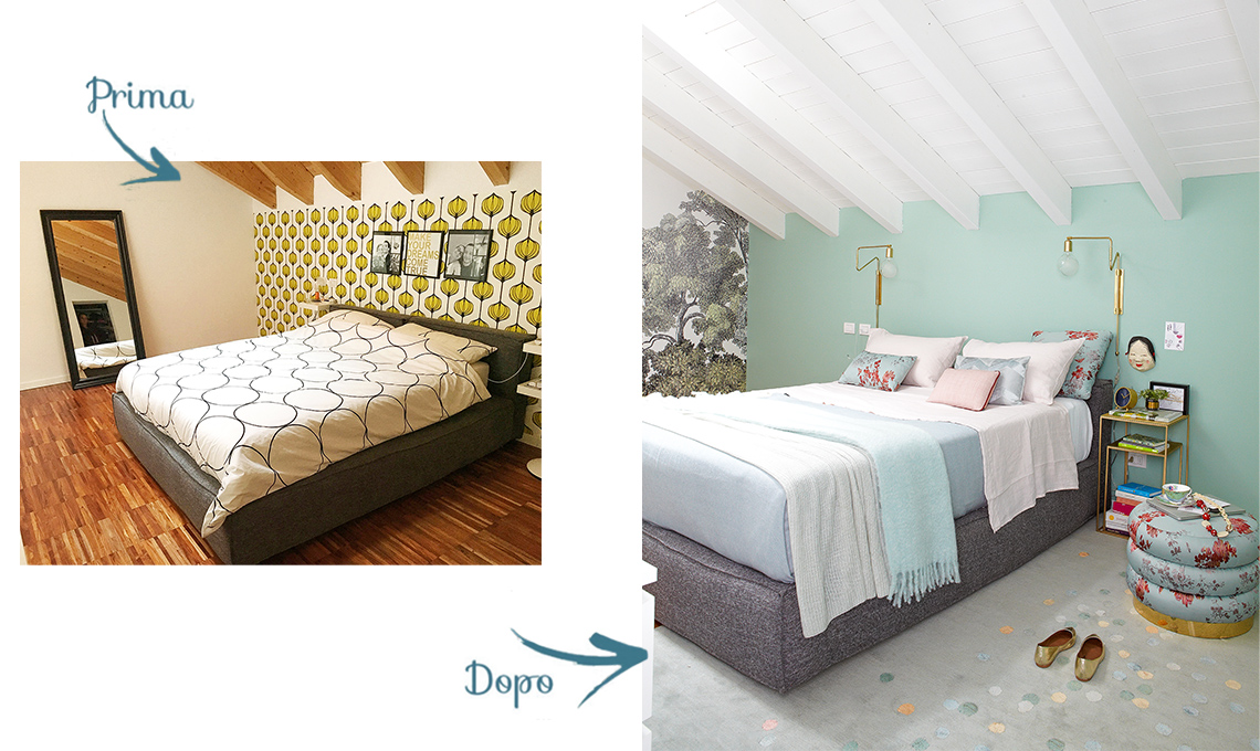 In camera le travi sono state dipinte di bianco. Prima erano in finitura legno come il parquet e l’insieme risultava pesante.