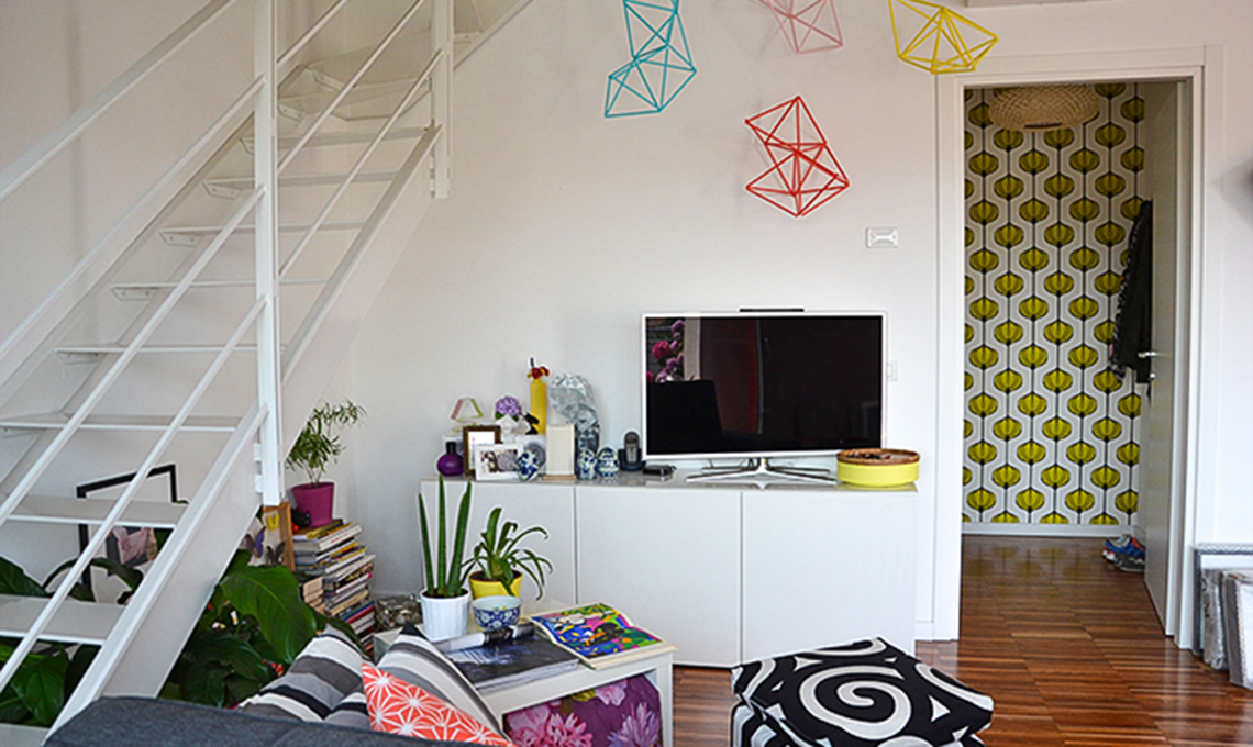 Inserisci dettagli chic. Alessandra ama sia il vintage sia lo stile jap: le stylist hanno usato stampe orientali su pouf e cuscini, creato un angolo lettura con una poltroncina d’epoca e inserito luci in ottone.