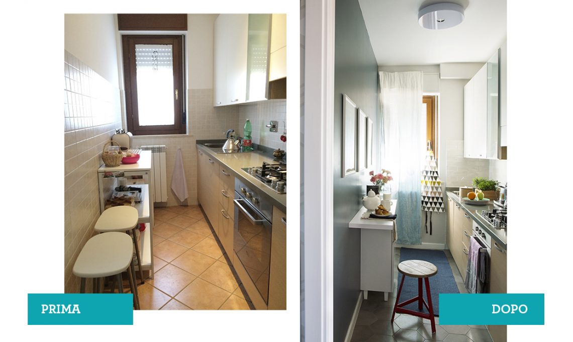 Cambiando il colore delle pareti e aggiungendo gli oggetti scelti dalle stylist, la cucina (comprata più di dieci anni fa) non sembra più la stessa!