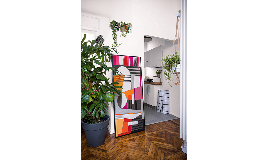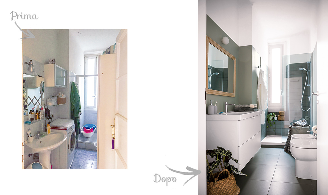 L'unico intervento di ristrutturazione riguarda il bagno che era davvero datato e mal disposto. Per il resto dell'appartamento è bastato il tocco di Vanessa Pisk. La cucina ha cambiato faccia togliendo il superfluo, l'ingresso svuotato ha cambiato faccia dipingendo le pareti in un grigio intenso. Nel living giocano da protagonisti il colore e arredi versatili mentre in camera, spostando l’armadio si è creato spazio utile per un angolo studio e per dare risalto al letto incorniciato da una tappezzeria a maxi disegni.