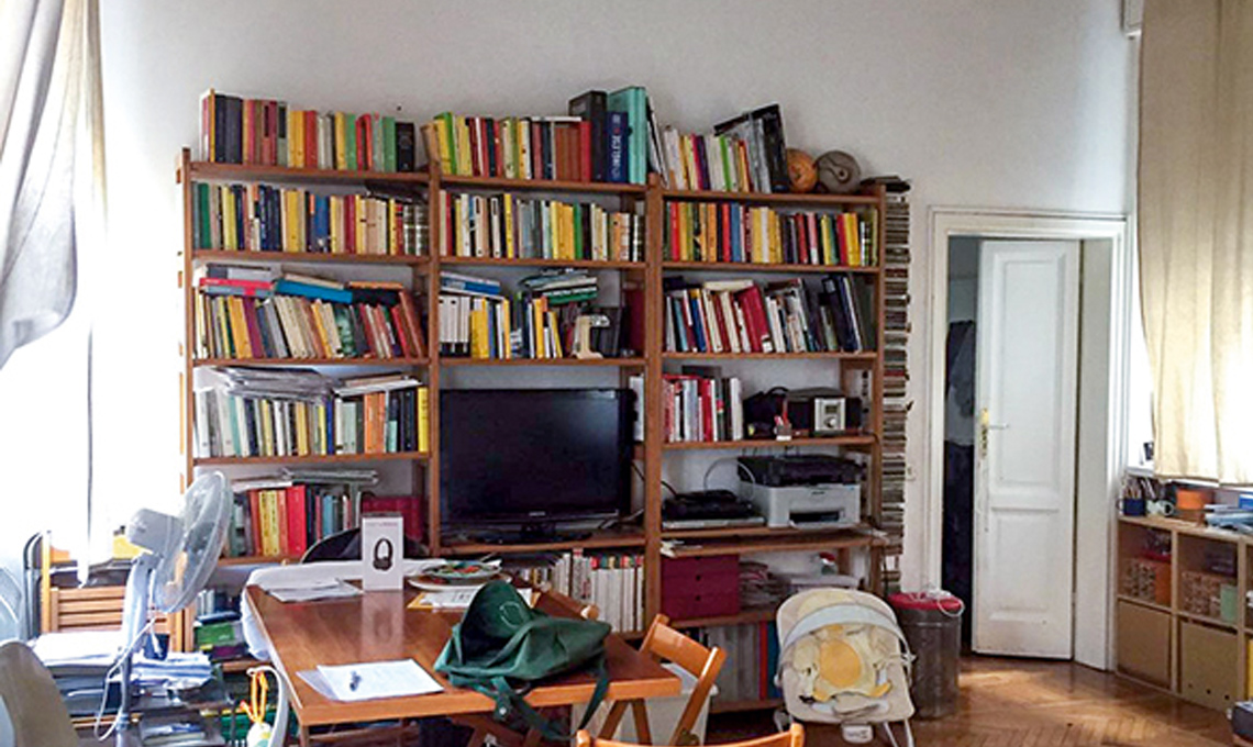 Il soggiorno è organizzato con tanti elementi dalle dimensioni contenute ma da combinare in modo sempre nuovo in base all’occasione: dalla serata tv alla cena in piedi, al tè della domenica con le amiche. Non mancano le opere d’arte: dai quadri dipinti dalla madre di Martina, a quelli di famiglia sottolineati da importanti cornici dorate. E sul finto camino, che ‘fa epoca’, una galleria di opere contemporanee in total white.