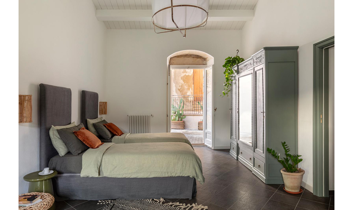 Importante sono state le parure tessili delle camere: che ci si trovi in una casa privata o in una struttura ricettiva, il letto è il fulcro su cui lavorare. Qui si è scelto