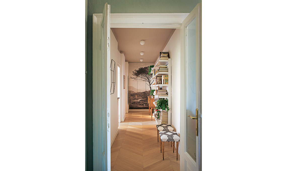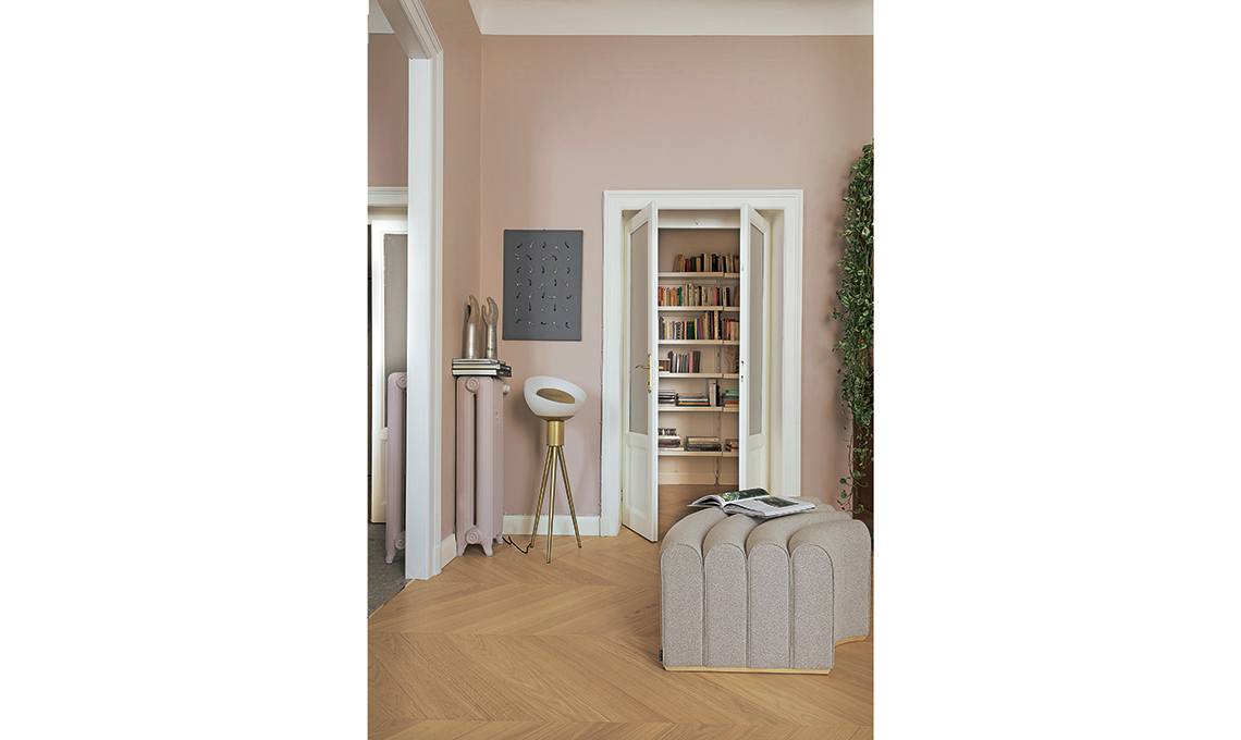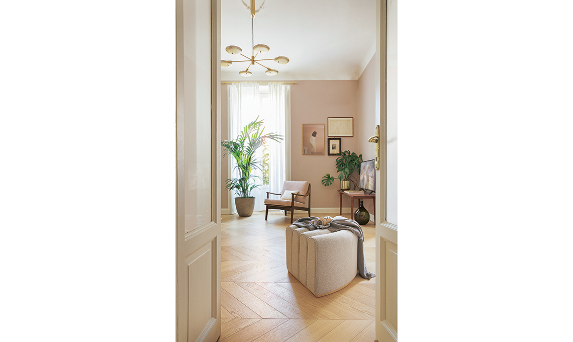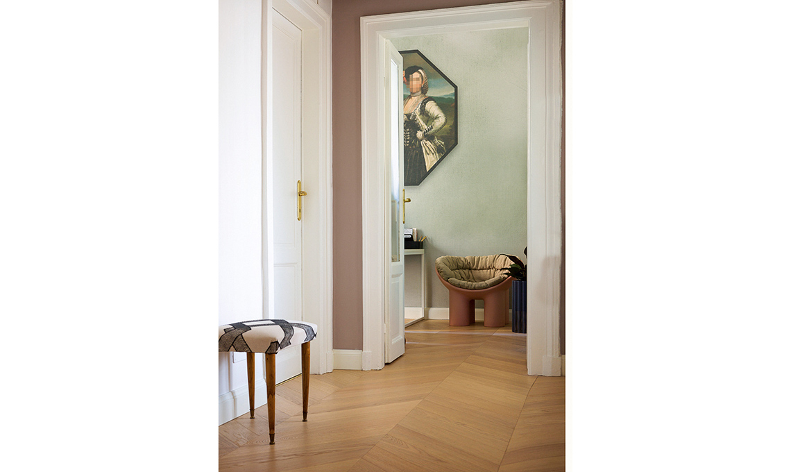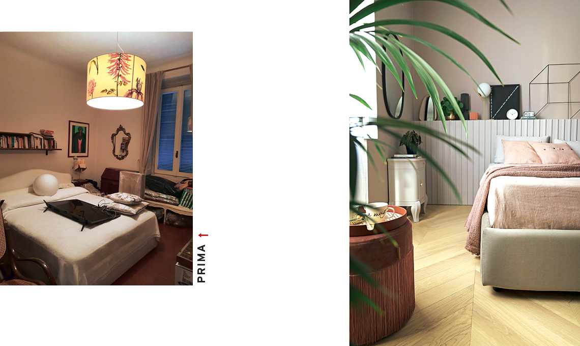 Vanessa è partita dal pavimento, l’elemento che da solo dà carattere a tutta la casa e la rende, come dico sempre, ‘fotogenica’. Ha scelto parquet in rovere chiaro posato a spina francese, perfetto con gli elementi d’epoca già presenti (porte, cornici, zoccolini e termosifoni). I colori dovevano essere rilassanti ma cercava anche un modo per far sì che la casa, oltre ad abbracciare e proteggere, la facesse evadere...