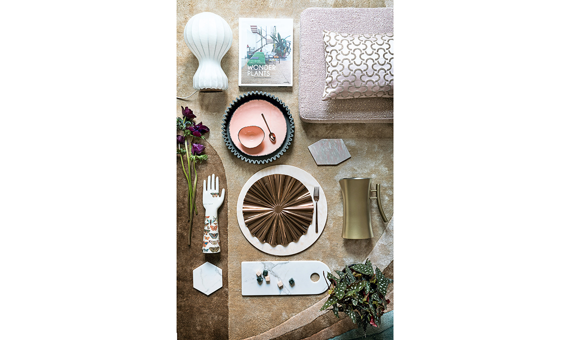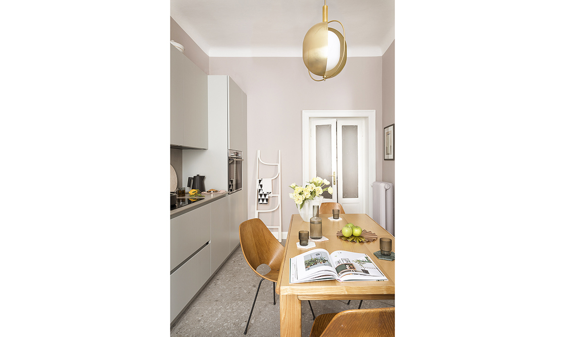 Colori tenui dal rosa al grigio passando per il verde, materiali preziosi come ottone, marmo e legno