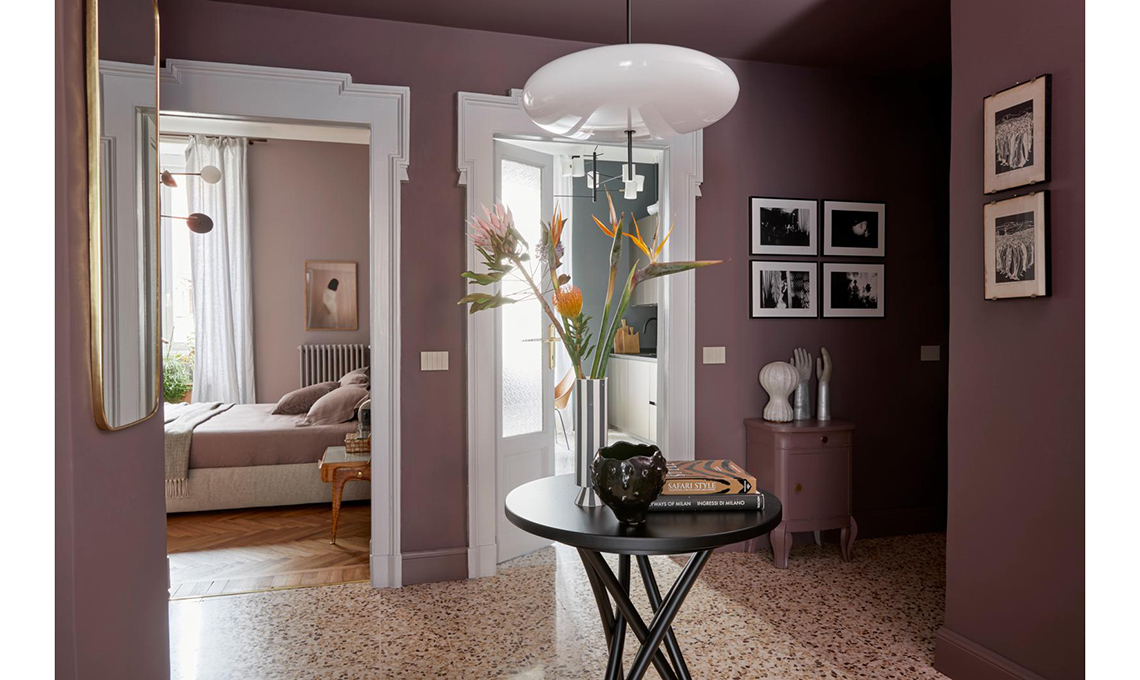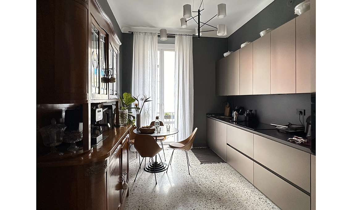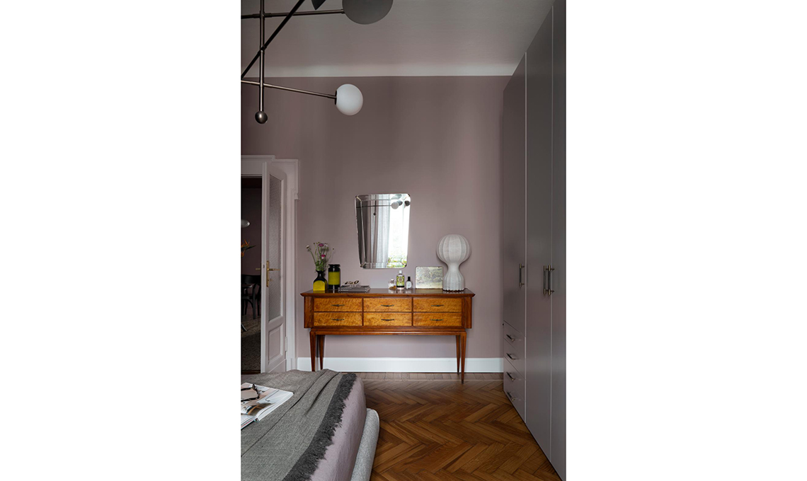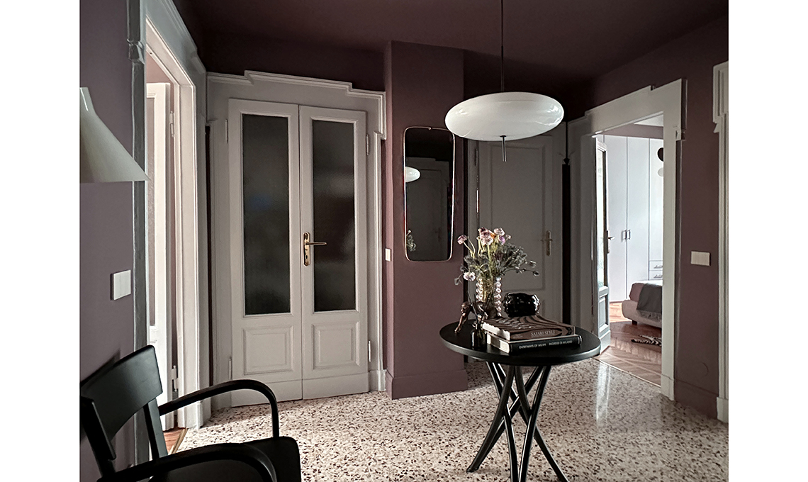 Mantenuti e restaurati porte e pavimenti originali, il bagno è stato leggermente ampliato e ora è molto più spazioso e funzionale. Per il resto Vanessa ha messo in evidenza la struttura e i dettagli d’epoca della casa usando su pareti e mobili dei colori ispirati dal contesto: il prugna dell’ingresso è nato dalla graniglia del pavimento e ha dato il la a una palette di rosa morbidi e polverosi che sfumano nel malva, fino a toccare l’antracite in cucina.